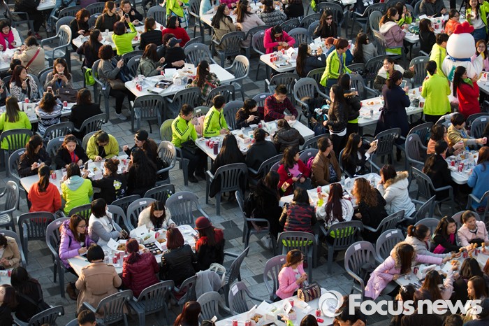 (인천=포커스뉴스) 28일 오후 인천 중구 월미 문화의 거리에서 중국 아오란 그룹 임직원 4500명이 치맥파티를 즐기고 있다.