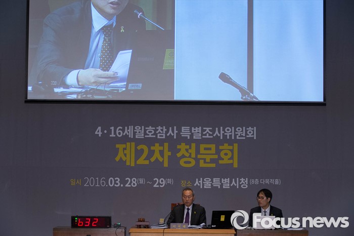 (서울=포커스뉴스) 29일 오전 서울시청 다목적홀에서 세월호 참사 특별조사위원회의 제2차 청문회가 열렸다. 조사위원들이 증인에게 질문을 하고 있다.