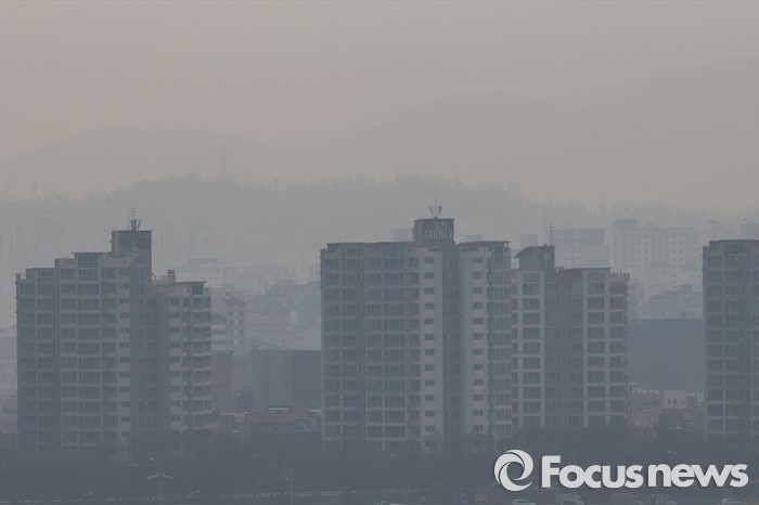 (서울=포커스뉴스) 국외 미세먼지 유입으로 '나쁨' 수준의 농도가 전 권역서 나타나고 있는 29일 오후 서울 광진구에서 바라본 도심이 미세먼지에 싸여 있다.
