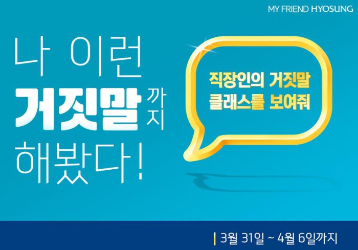 효성이 공식적으로 귀여운 거짓말이 허용되는 만우절(4월1일)을 맞아 그룹 SNS(사회관계망서비스)를 통해 '직장인 거짓말 콘테스트'를 진행한다.