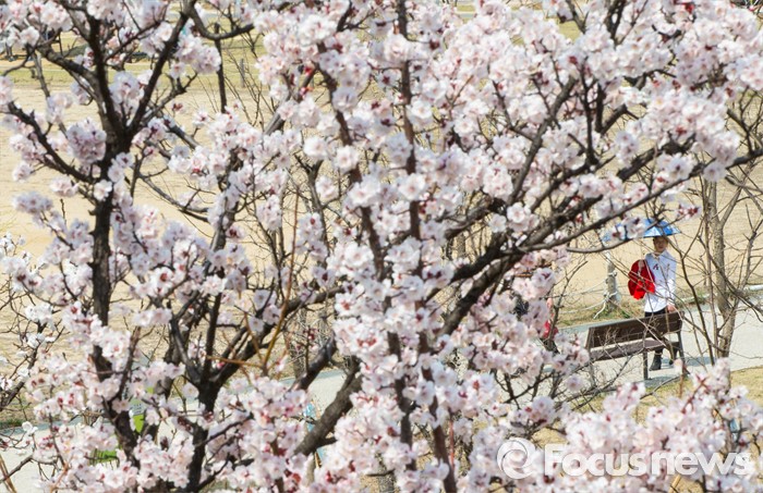(서울=포커스뉴스) 봄 기운이 완연한 1일 오후 서울 여의도 한강공원의 벚나무에 꽃이 만개해 있다.