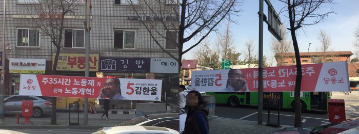 정류장에서 버스를 기다리던 지역주민 K씨는 "펼침막 때문에 버스가 오는걸 보려면 차도 쪽으로 몸을 빼야 한다"며 "유권자한테 표 달라고 선거운동하면서 유권자 생각은 하나도 안 한다"고 말했다.