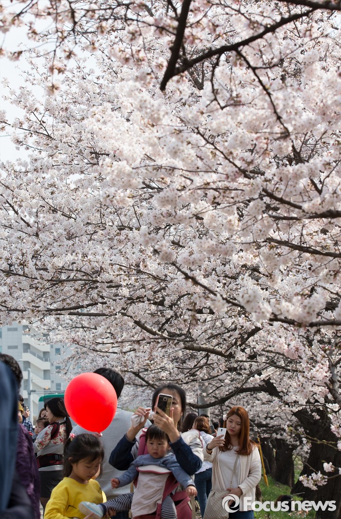 (청주=포커스뉴스) 화창한 날씨를 보인 2일 오후 충북 청주시 무심천 일원에 벚꽃이 만개해 많은 시민들이 여유로운 주말을 즐기고 있다.