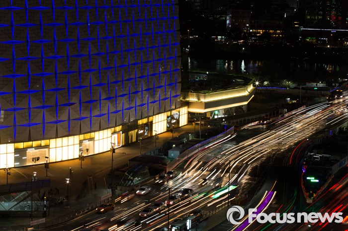 (서울=포커스뉴스) 세계 자폐인의 날인 2일 오후 서울 송파구 롯데월드타워의 건물 외벽에 파란색 LED 조명이 빛을 밝히고 있다.