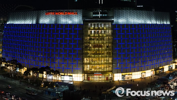 (서울=포커스뉴스) 세계 자폐인의 날인 2일 오후 서울 송파구 롯데월드타워의 건물 외벽에 파란색 LED 조명이 빛을 밝히고 있다.