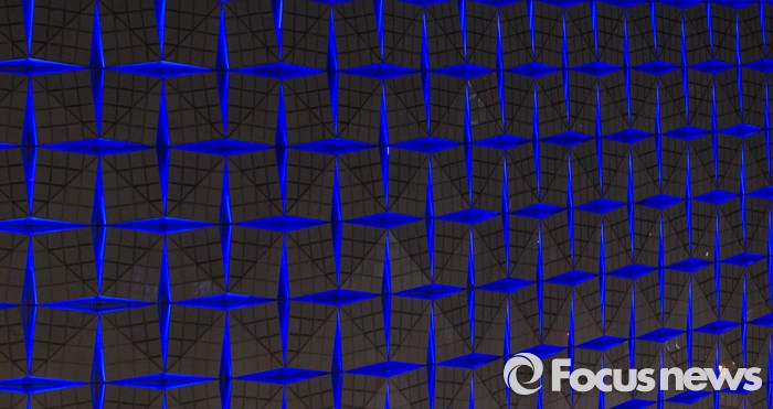 (서울=포커스뉴스) 세계 자폐인의 날인 2일 오후 서울 송파구 롯데월드타워의 건물 외벽에 파란색 LED 조명이 빛을 밝히고 있다.