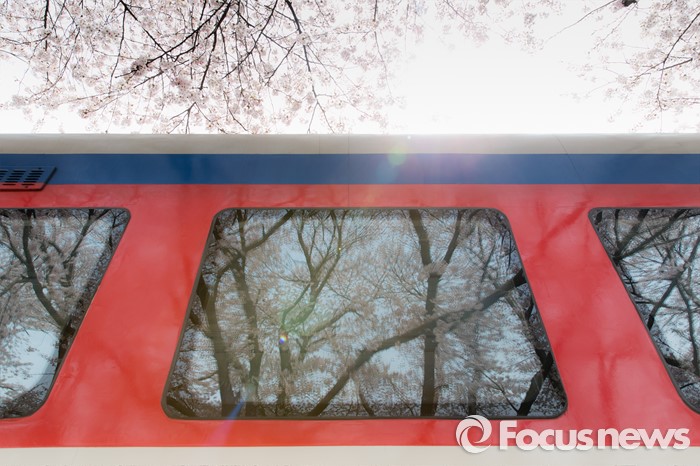 (창원=포커스뉴스) 2일 오후 경남 창원시 진해구 경화역을 찾은 관광객들이 만개한 벚꽃을 보며 즐거운 시간을 보내고 있다.
