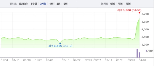 4일 오전 9시 51분 현재 보락은 전일 대비 385원(7.77%) 오른 5340원에 거래되고 있다. 보락의 주가는 3월 31일 2.55%, 4월 1일 29.88% 상승하는 등 3거래일 연속 상승세다. 3월 30일(3720원) 주가와 비교했을 때 무려 43% 오른 수치다.