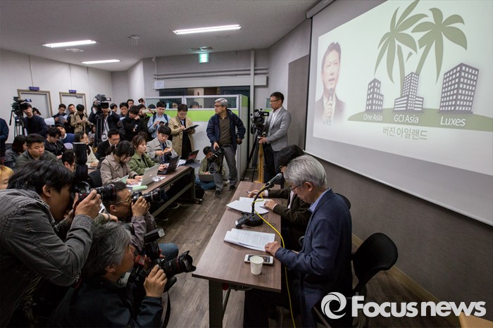 (서울=포커스뉴스) 김용진 뉴스타파 대표가 4일 오전 서울 중구 성공회빌딩에서 '2016 조세도피 한국인 발표'를 하고 있다.