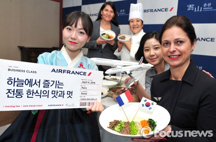 (서울=포커스뉴스) 에어프랑스는 파리발 서울행 비즈니스 클래스 고객에게 전통 한식당 '운산'과 함께 개발한 한식 메뉴를 기내식으로 제공한다고 4일 밝혔다.
