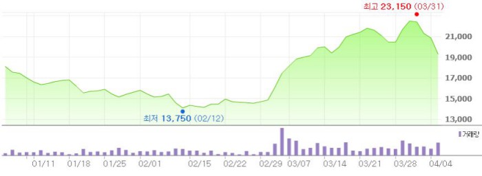 그는 "한진칼의 유상증자는 계열사 위험 부각에 따른 신용등급 하락과 한진해운 상표권 매입으로 인한 단기 차입금 1100억원 증가 영향으로 올해 하반기 단기 유동성이 악화될 수 있다는 우려에 대한 대응 방안으로 판단된다"고 진단했다.최근 3개월간 한진칼 주가 추이 <그래픽출처=네이버>