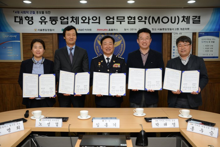 (서울=포커스뉴스) 서울 종암경찰서는 관내 백화점 및 대형할인점과 4대 사회악 홍보 활동 협조' 등을 골자로 한 업무협약(MOU)을 맺었다고 4일 밝혔다.