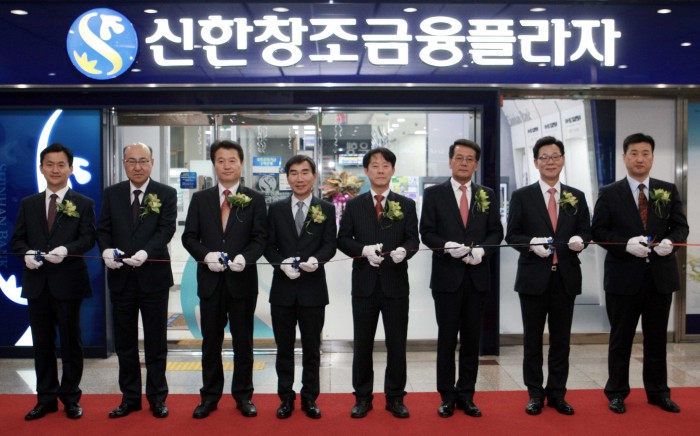 은행과의 거래에만 의존하던 기존 기업들은 '신한창조금융플라자'를 통해 대출·예금·외국환 등 전통적인 기업금융 서비스는 물론 M&A·인수금융 자문, 유상증자, IPO를 통한 자금조달 등 폭넓은 자본시장 서비스까지 한 자리에서 해결할 수 있다.신한창조금융플라자 남동공단 개점식. (왼쪽 두번째부터) 신한금융그룹 CIB 사업부문 우영웅 그룹장, 인천지방중소기업청 박선국 청장, 신한금융지주 김형진 부사장, 한국산업단지공단 박동철 인천지역 본부장, (주)셀트리온 김형기 대표이사