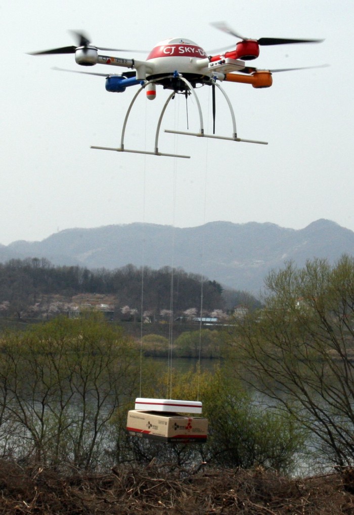 CJ대한통운은 지난해 5월 국내 물류기업 최초로 씨제이 스카이도어(CJ SKY-DOOR)라는 이름의 드론을 도입했으며, 같은 해 10월에는 국토교통부가 시행하는 '무인비행장치 활용 신산업 안전성 검증 시범사업'에서 시범사업자로 선정돼 영월, 전주 등 시범사업 전용공역에서 개발 기술의 안전성 검증을 위한 시험비행을 진행하고 있다.