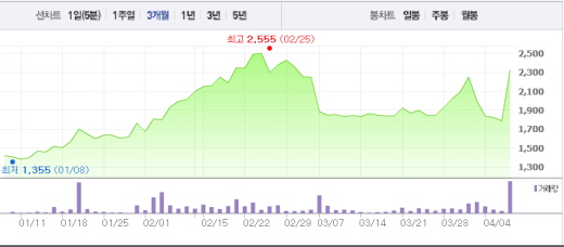 7일 오전 9시31분 현재 액트는 전일 대비 29.89%(535원) 상승한 2325원에 거래중이다.