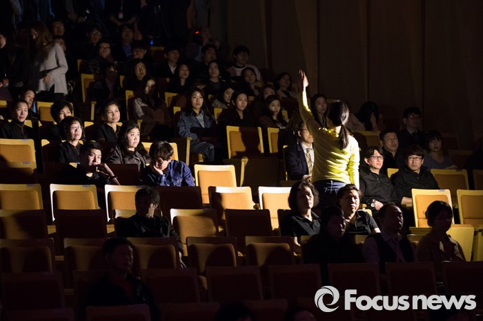 (서울=포커스뉴스) 7일 오후 서울 서초구 예술의전당 음악당에서 열린 유관 기관 합동 대테러훈련에서 관객이 폭발물을 발견해 직원에게 알리고 있다. 이번 훈련은 공연 도중 폭발 의심물체가 발견된 상황을 설정해 훈련을 진행했다.