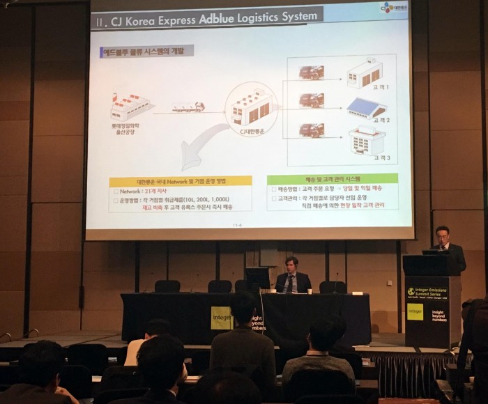 CJ대한통운은 이 자리에서 '한국 애드블루 물류 성장기록과 미래'라는 주제로 한국 요소수 물류 현황에 대해 발표했다. 요소수는 선택적 촉매 환원(SCR) 시스템 방식의 디젤차량에 쓰이는 친환경 촉매제다.