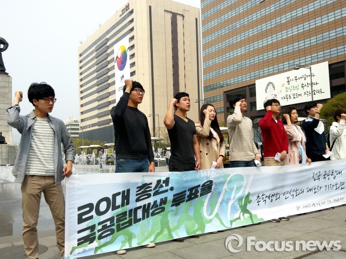 '전국 국공립대 총학생회장 연석회의'는 이날 오후 서울 광화문 광장 이순신 동상 앞에서 기자회견을 열고 "이번 총선에서 대학생들이 적극적으로 주어진 권리를 행사해야 한다"고 강조했다.