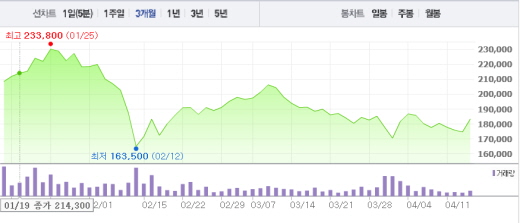 전날 장 종료 후 코오롱생명과학은 “퇴행성관절염 치료체 ‘티슈진-C(인보사)’의 임상 3상 시험이 종료됐다”면서 “퇴행성관절염 환자를 대상으로 세포매개성 유전자치료제인 ‘티슈진-C(인보사)’의 유효성 및 안정성 평가를 위한 위약대조, 양측눈가림, 무작위배정, 평행군, 다기관 공동 제3상 임상시험을 했다”고 공시했다.주가흐름<사진출처=네이버 캡쳐>
