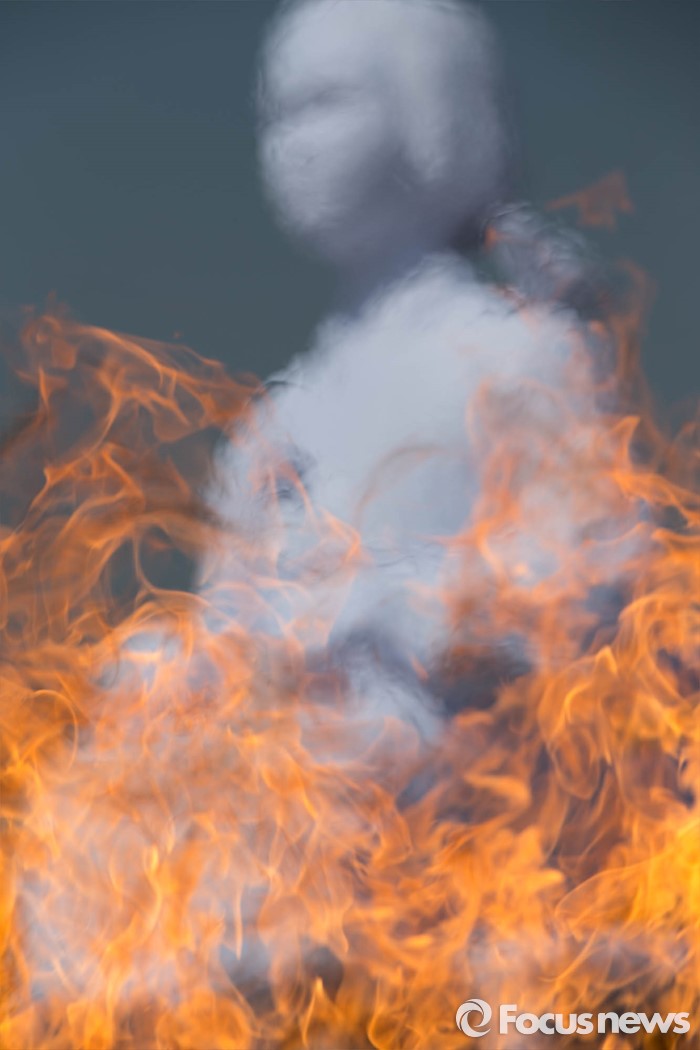 (화성=포커스뉴스) 15일 오전 경기도 화성시 제암리 3.1운동 순국 기념관에서 열린 '4.15 제암, 고주리 학살사건 희생자 추모제'에서 평화의 봉화가 타오르고 있다.