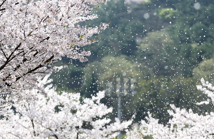 (서울=포커스뉴스) 15일 경기 용인시 명지대학교 자연캠퍼스에서 벚꽃잎이 바람에 흩날리고 있다. <사진제공=명지대학교>