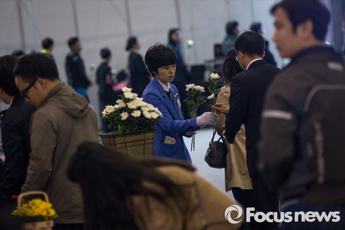 (안산=포커스뉴스) 세월호 참사 2주기인 16일 오전 경기도 안산시 단원구 화랑유원지에 마련된 합동분향소에 추모객 발길이 이어지고 있다.