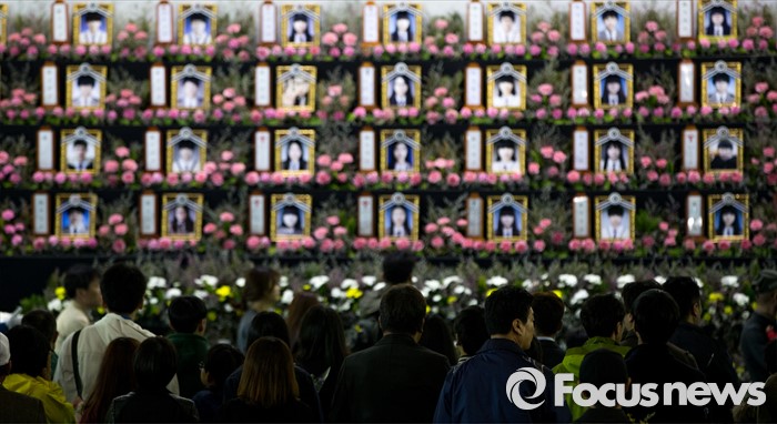 (안산=포커스뉴스) 세월호 참사 2주기인 16일 오전 경기도 안산시 단원구 화랑유원지에 마련된 합동분향소에 추모객 발길이 이어지고 있다.