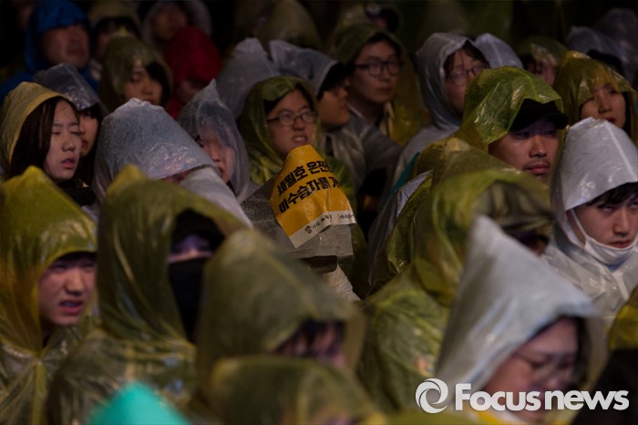 (서울=포커스뉴스) 16일 오후 서울 종로구 광화문 광장에서 열린 '세월호 참사 2주기 전국집중 범국민 추모문화제'에 참가한 유가족 및 시민들이 세월호 진상규명을 촉구 하고 있다.