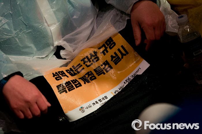 (서울=포커스뉴스) 16일 오후 서울 종로구 광화문 광장에서 열린 '세월호 참사 2주기 전국집중 범국민 추모문화제'에 참가한 유가족 및 시민들이 세월호 진상규명을 촉구 하고 있다.