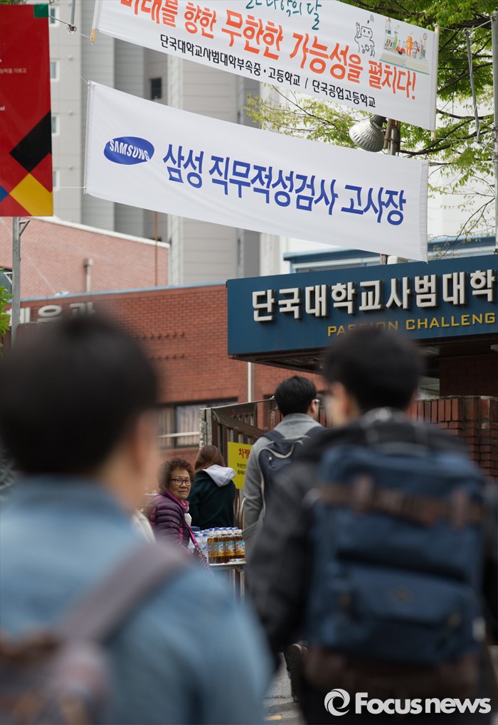 (서울=포커스뉴스) 17일 오전 서울 강남구 단국대학교부속고등학교에서 삼성그룹 공개채용시험 직무적성검사(GSAT)를 치르기 위한 취업준비생들이 고사장으로 향하고 있다.