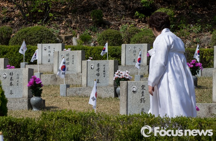 (서울=포커스뉴스) 4·19 혁명 56주기를 하루 앞둔 18일 오전 서울 강북구 국립4.19 민주묘지를 찾은 유가족들이 희생자의 묘소로 향하고 있다.