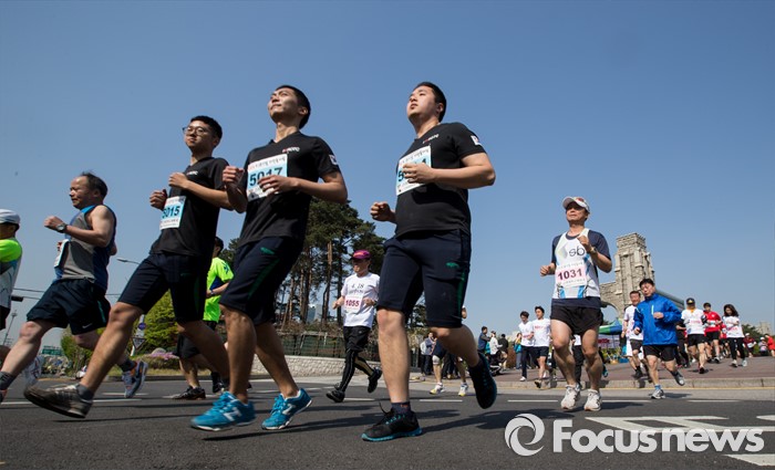 (서울=포커스뉴스) 4·19 혁명 56주기를 하루 앞둔 18일 오전 서울 성북구 고려대학교에서 열린 '4·18 희망나눔 마라톤'에 참가한 고려대생 및 일반인 참가자들이 힘차게 출발하고 있다.