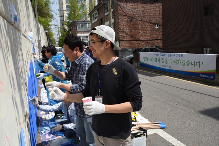(서울=포커스뉴스) 효성은 중공업 부문 우수 협력사와 함께 '안전마을 만들기' 프로젝트로 벽화 그리기 봉사활동을 실시했다고 18일 밝혔다.