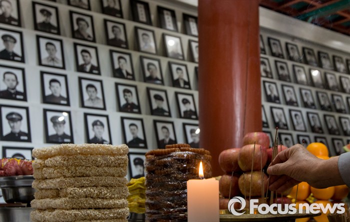 (서울=포커스뉴스) 4·19 혁명 56주기를 하루 앞둔 18일 오전 서울 강북구 국립4.19 민주묘지 유영봉안소에서 열린 4.19 혁명 희생영령 추모제를 찾은 유가족 및 관계자들이 분향하고 있다.