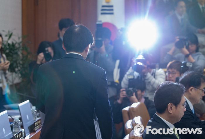 (서울=포커스뉴스) 이주열 한국은행 총재가 19일 오전 서울 중구 남대문로 한국은행 본관에서 열린 금융통화위원회의에 참석하 있다.