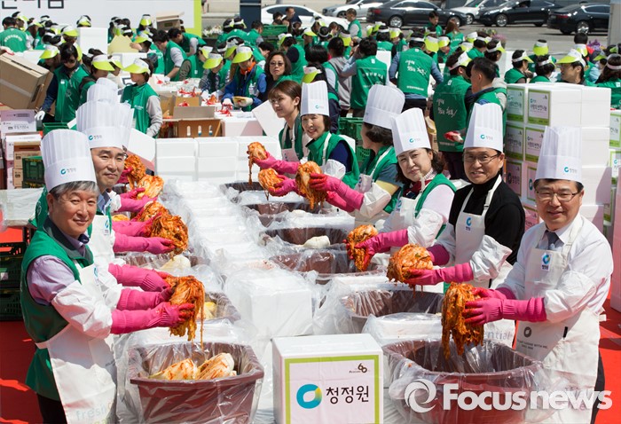 (서울=포커스뉴스) 19일 오전 서울 광화문광장에서 청정원 사랑의 반찬나눔 행사에 참석한 대상 임직원들과 자원봉사자들이 어려운 이웃들에게 전달할 선물세트를 포장하고 있다.