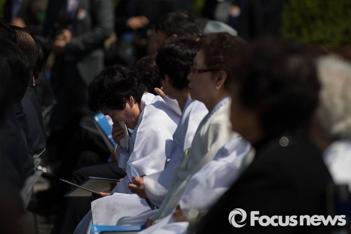 (서울=포커스뉴스) 19일 오전 서울 강북구 국립 4.19 민주묘지에서 열린 '제56주년 4.19혁명 기념식'에 참석한 유가족이 울음을 터뜨리고 있다.