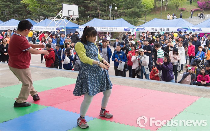 (청주=포커스뉴스) 20일 오후 충북 청주 올림픽국민생활관 일원에서 열린 제36회 장애인의 날 기념행사에서 참가자들이 장기자랑을 관람하고 있다.