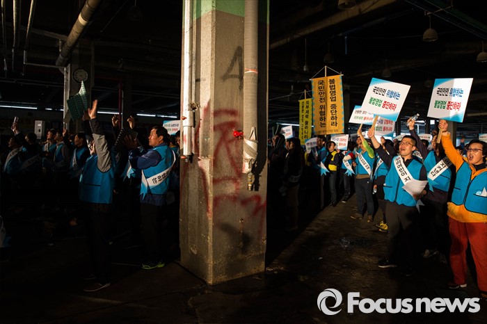 (서울=포커스뉴스) 노량진수산시장 현대화 사업으로 상인들과 수협 간 갈등이 고조되고 있는 20일 오후 서울 영등포구 노량진수산시장에서 전국 어민 2000여 명이 시장 정상화를 촉구하는 총궐기 대회를 열고 있다.