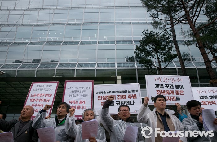 (서울=포커스뉴스) 21일 오전 서울 여의도 전경련회관에서 재벌사내유보금환수운동본부 등 관련단체 회원들이 재벌사내유보금 현황발표 및 환수운동 선포 기자회견을 하고 있다.