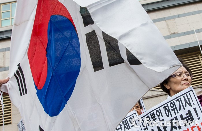 (서울=포커스뉴스) 최근 전경련의 차명계좌 자금 지원 의혹을 받고 있는 어버이연합 회원들이 21일 오후 서울 용산구 시사저널 사옥 앞에서 시사저널 규탄 기자회견을 하고 있다.