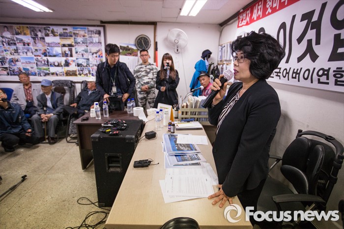 (서울=포커스뉴스) 김미화 자유민연합 대표가 22일 오전 서울 종로구에 위치한 어버이연합 사무실에서 기자회견을 하고 있다. 전경련에서 자금지원을 받은 의혹으로 논란에 휩싸인 어버이연합은 이날 기자회견을 열고 언론에 보도된 어버이연합 관련 기사들에 반박했다.