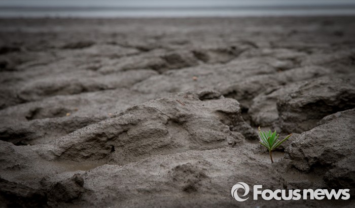 (인천=포커스뉴스) 마흔 여섯번째 지구의 날을 맞은 22일 오전 경기 인천시 영종대교 아래 갯벌을 매운 간척지 운염도의 모습. 메마르고 갈라진 땅 위로 생명의 싹이 푸르른 빛을 발하고 있다. 지구의 허파로 불리는 갯벌은 생태계 면적의 0.3%에 불과하지만 자연의 정화조로서 생태적 가치는 숲의 10배, 농경지의 100배에 달한다. 간척과 매립 등 인간의 욕심으로 서서히 사라져가는 갯벌, 어머니 지구의 준엄한 경고를 새겨들을 때이다.