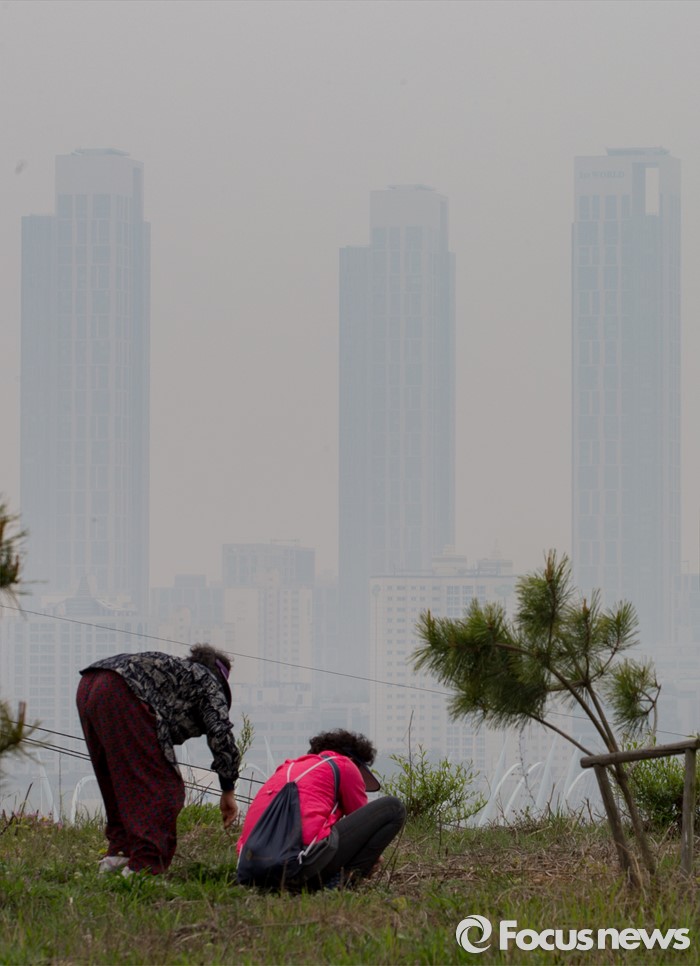 △ 황사 속 쑥 캐기