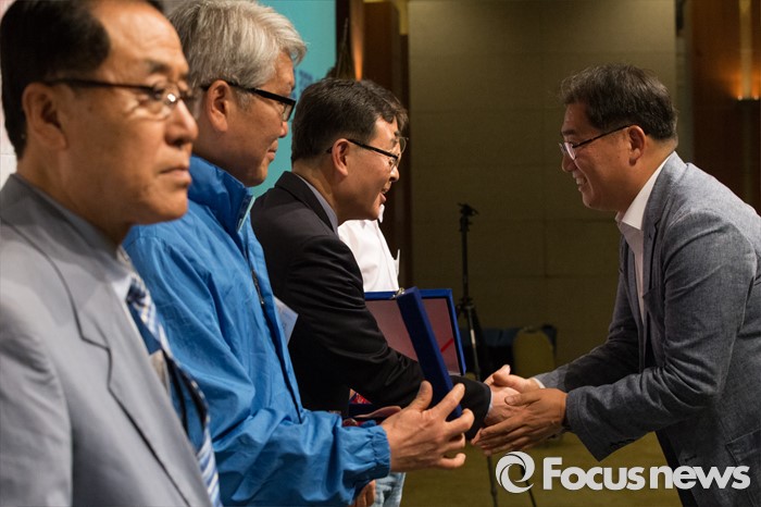 (서울=포커스뉴스) 22일 오후 서울 용산구 백범기념관에서 열린 사회복지사협의회 창립 30주년 기념행사에서 장재구 사회복지사협회 회장이 공로패를 사회복지사들에게 전달하고 있다.