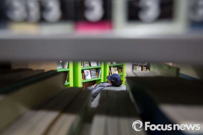 (서울=포커스뉴스) 세계 책의 날을 하루 앞둔 22일 오후 서울 중구 서울도서관에서 한 시민이 잠시 잠을 청하고 있다.