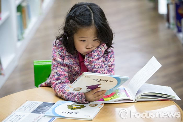 (서울=포커스뉴스) 세계 책의 날을 하루 앞둔 22일 오후 서울 중구 서울도서관에서 한 어린이가 진지한 표정으로 책을 읽고 있다.