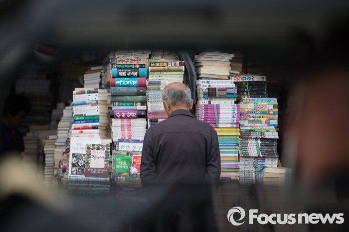 (서울=포커스뉴스) 세계 책의 날인 23일 오전 서울 중구 청계6가 평화시장 헌책방 골목에서 한 노인이 책방에 쌓인 책을 바라보고 있다. 청계 6가 헌책방거리는 1970년대 점포수가 200여 개에 달할 정도로 성황이었지만 현재는 25곳 정도 밖에 남아 있지 않다.