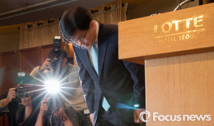 △ 고개 숙여 사과하는 김종인 롯데마트 대표