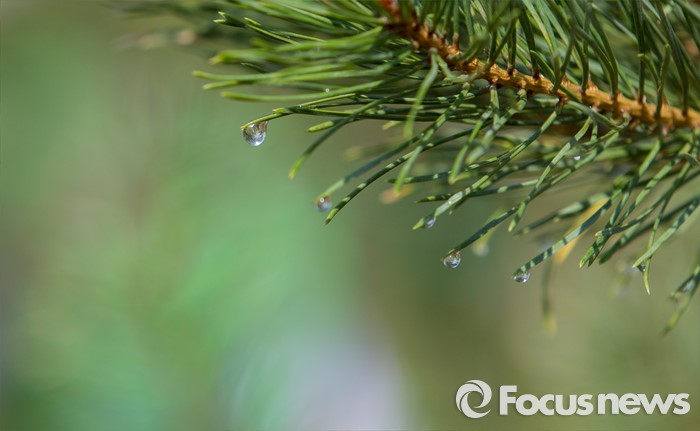 (다라더치/중국=포커스뉴스) 25일 오전 중국 내몽고 다라더치 쿠부치사막에서 2016 미래숲 15기 녹색봉사단원들이 심어놓은 소나무 잎에 물방울이 맺혀 있다. 미래숲 녹색봉사단원은 이번 봉사활동을 통해 황폐화된 사막에 나무 심기 및 각국 청년들과 우호를 증진을 위한 교류 활동을 전개했다.